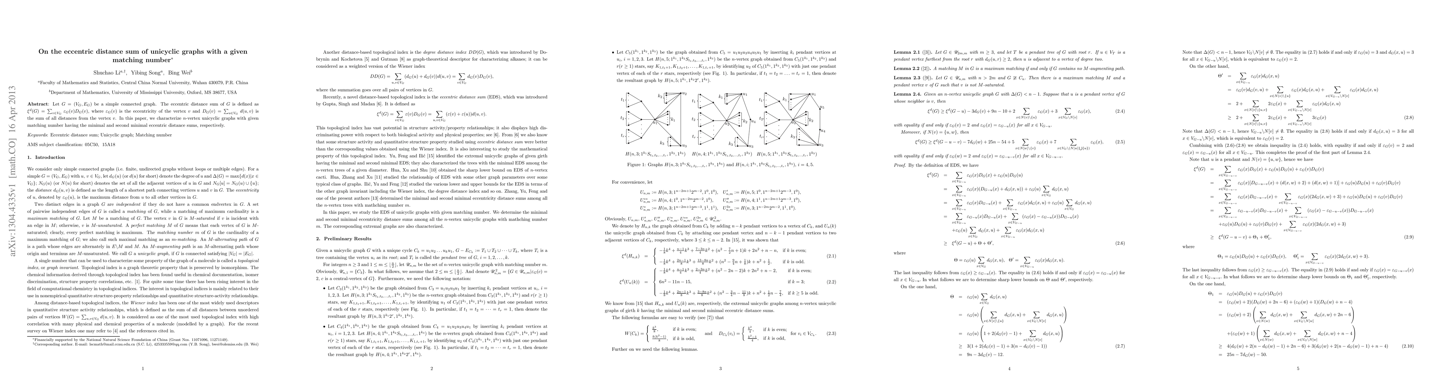 Let $G = (V_G,E_G)$ be a simple connected graph. The eccentric distance sum of $G$ is defined as $\xi^d(G)=\sum_{v \in V_G}\,\varepsilon_G(v)D_G(v),$ where $\varepsilon_G(v)$ is the eccentricity of the vertex $v$ and $D_G(v)=\sum_{u \in V_G}\,d(u,v)$ is the sum of all distances from the vertex $v$. In this paper, we characterize $n$-vertex unicyclic graphs with given matching number having the minimal and second minimal eccentric distance sums, respectively.