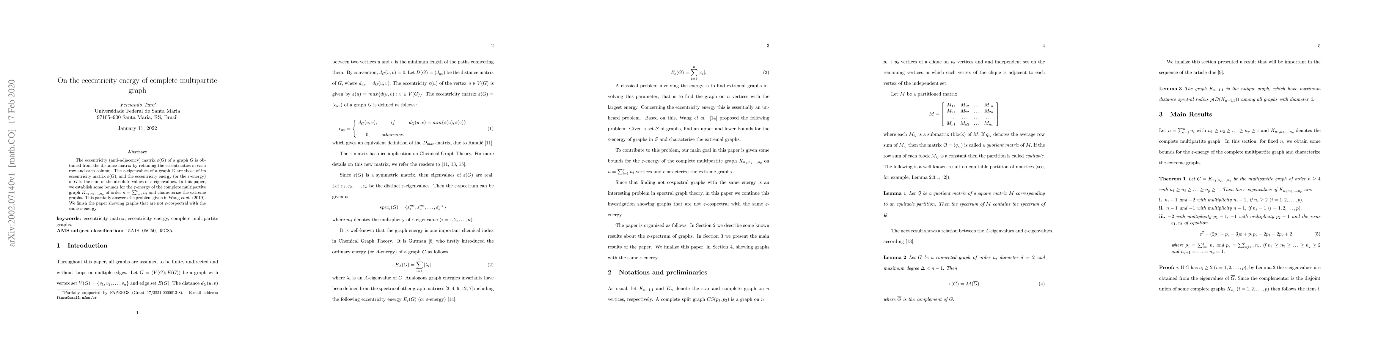 This paper establishes bounds for the eccentricity energy of complete multipartite graphs $K_{n_1, n_2, \ldots, n_p}$ and identifies the extremal graphs, partially addressing a problem posed by Wang et al. (2019). It also demonstrates graphs with the same eccentricity energy but differing $\varepsilon$-cospectral properties.