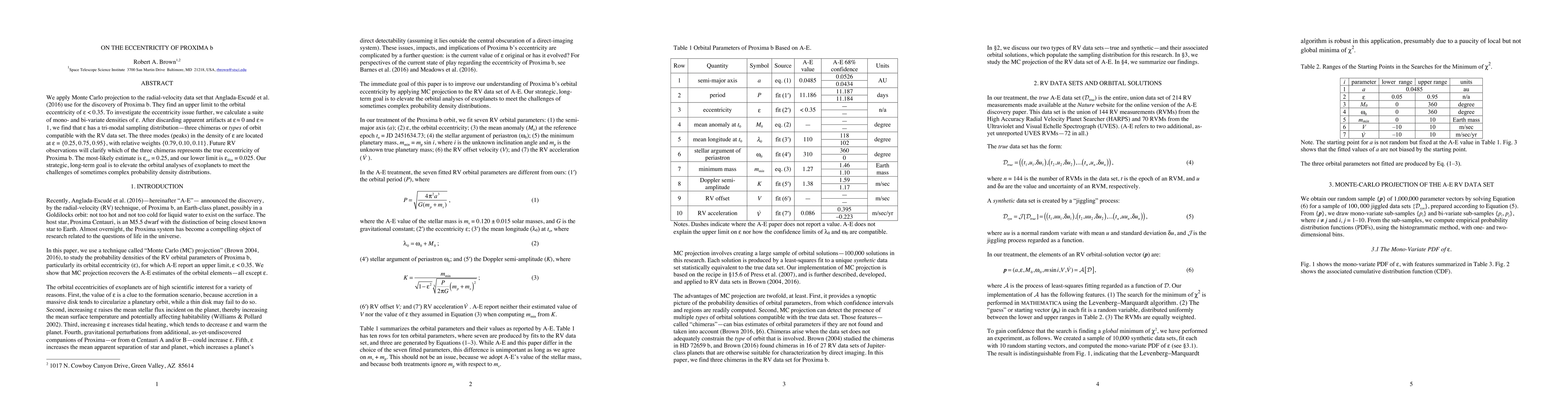 We apply Monte Carlo projection to the radial velocity data set that Anglada Escude et al. (2016) use for the discovery of Proxima b. They find an upper limit to the orbital eccentricity of 0.35. To investigate the eccentricity issue further, we calculate a suite of monovariate and bivariate densities o eccentricity. After discarding apparent artifacts at eccentricity = 0 and = 1, we find that eccentricity has a trimodal sampling distribution: three chimeras or types of orbit compatible with the RV data set. The three modes or peaks in the density of eccentricity are located at eccentricity = 0.25, 0.75, and 0.95, with relative weights 0.79, 0.10, and 0.11. Future RV observations will clarify which of the three chimeras represents the true eccentricity of Proxima b. The most-likely estimate is eccentricity = 0.25, and our lower limit is eccentricity = 0.025. Our strategic, long-term goal is to elevate the orbital analyses of exoplanets to meet the challenges of sometimes complex probability density distributions.