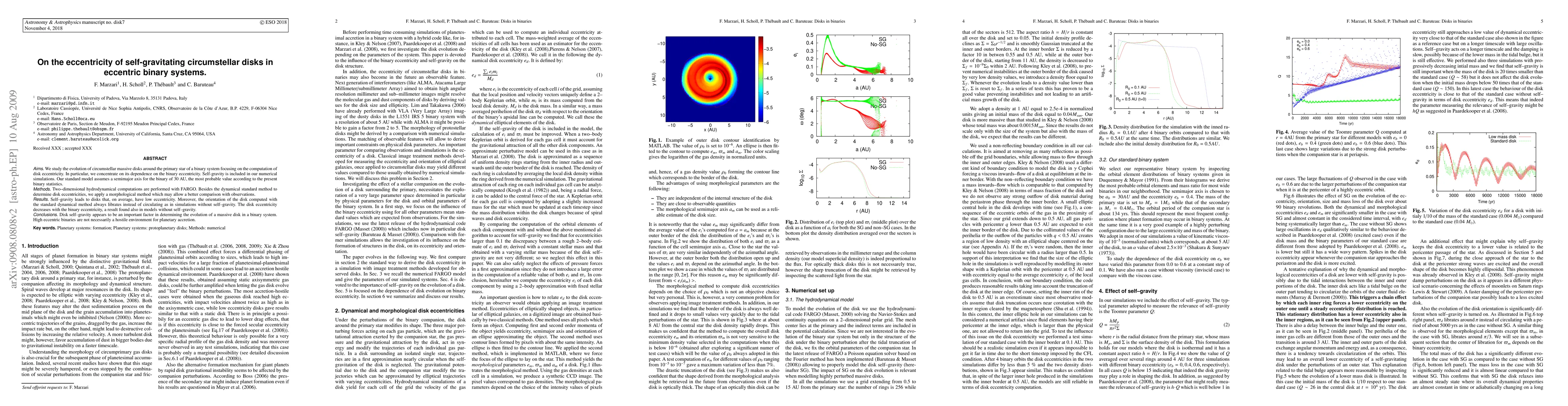 We study the evolution of circumstellar massive disks around the primary star of a binary system focusing on the computation of disk eccentricity. In particular, we concentrate on its dependence on the binary eccentricity. Self-gravity is included in our numerical simulations. Our standard model assumes a semimajor axis for the binary of 30 AU, the most probable value according to the present binary statistics.