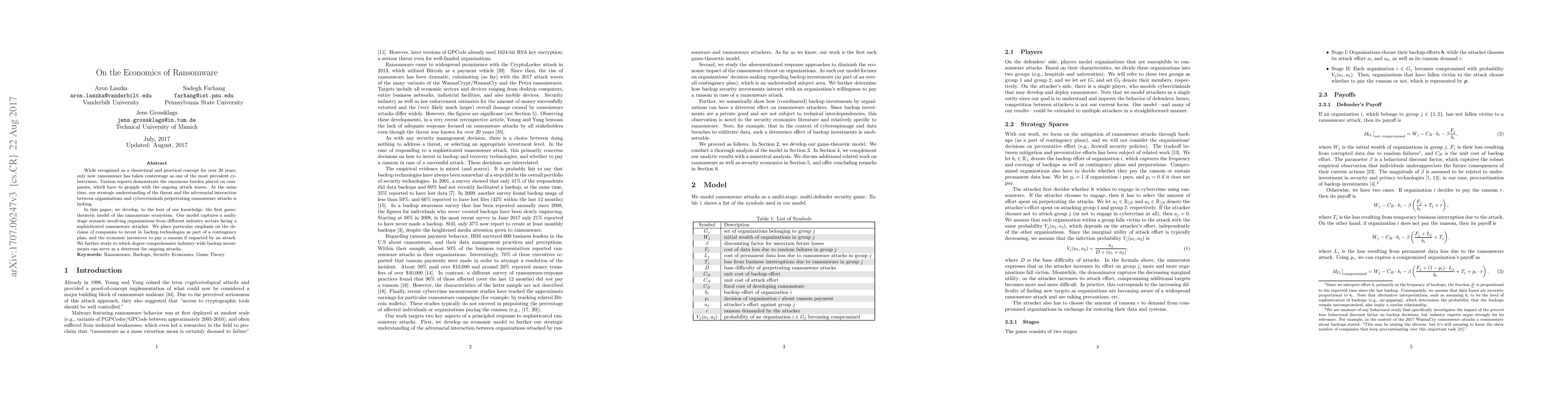 Researchers developed a game-theoretic model to understand ransomware attacks, finding that industry-wide backup investments can serve as a deterrent for ongoing attacks.
