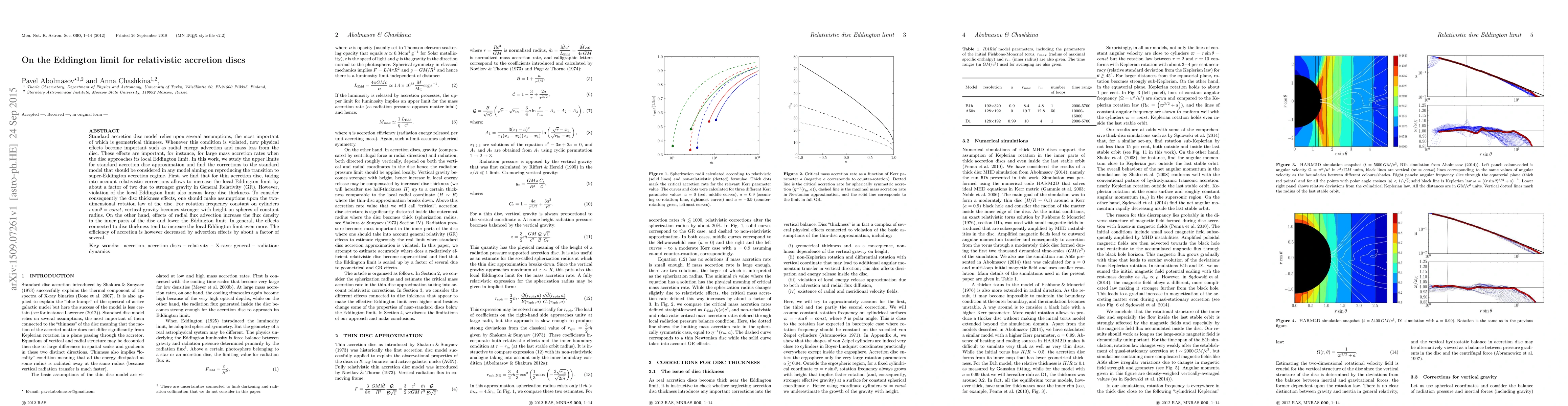 This paper investigates the upper limits of standard accretion disc models, focusing on the transition to super-Eddington accretion regimes. It finds that relativistic corrections can double the local Eddington limit due to stronger gravity in General Relativity, but radial energy advection and disc thickness effects can lower the effective limit and decrease accretion efficiency.