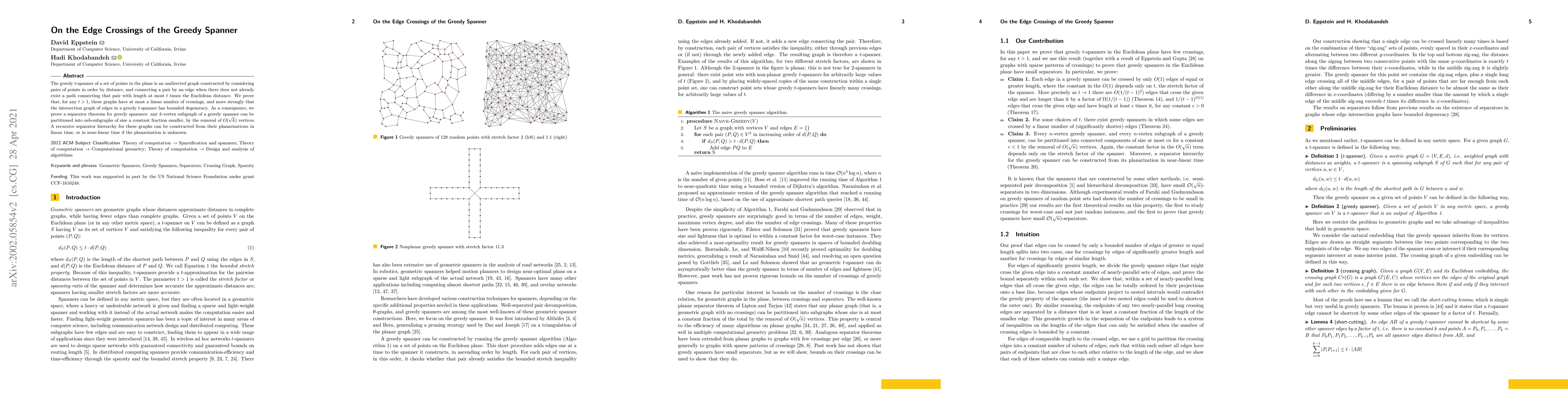 The paper studies the edge crossings of the greedy spanner for points in the Euclidean plane, showing a constant upper bound on intersections with larger edges and an unbounded number of intersections with smaller edges.