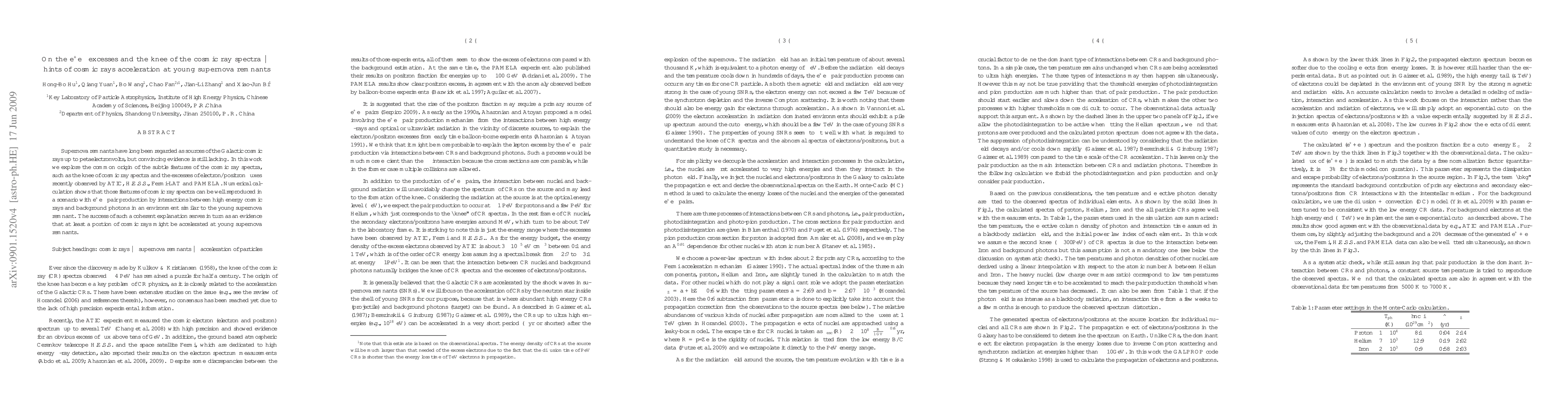 This paper explores the potential link between young supernova remnants and the knee in cosmic ray spectra and observed excesses of e$^+$e$^-$ pairs, suggesting that these features could be evidence of cosmic ray acceleration in such remnants. Numerical simulations support the hypothesis that cosmic rays may indeed originate from these environments.