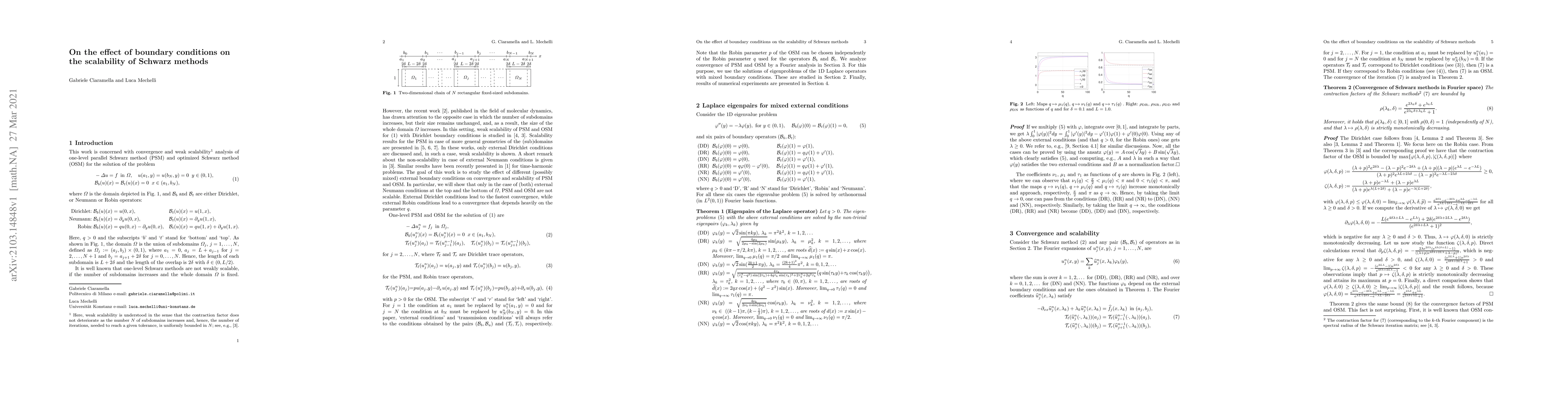 This research investigates the impact of various boundary conditions, including mixed Dirichlet, Neumann, and Robin, on the convergence and scalability of one-level and optimized Schwarz methods. It extends previous findings that demonstrated scalability for specific domain geometries and Laplace equations with external Dirichlet conditions.