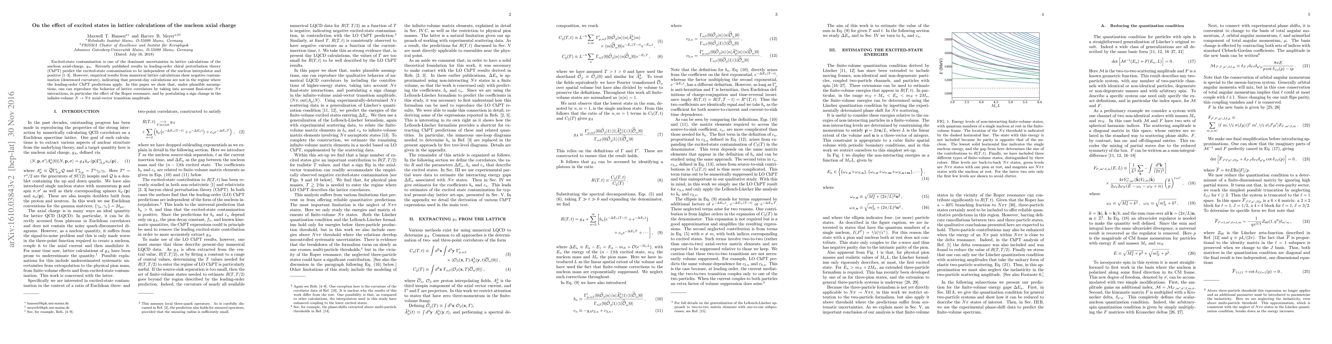 This paper investigates the excited-state contamination in lattice calculations of the nucleon axial charge $g_A$, showing that current calculations do not align with leading-order chiral perturbation theory predictions. It proposes that accounting for the Roper resonance and a sign change in the infinite-volume $N \to N \pi$ axial-vector transition amplitude can reproduce observed negative contamination.