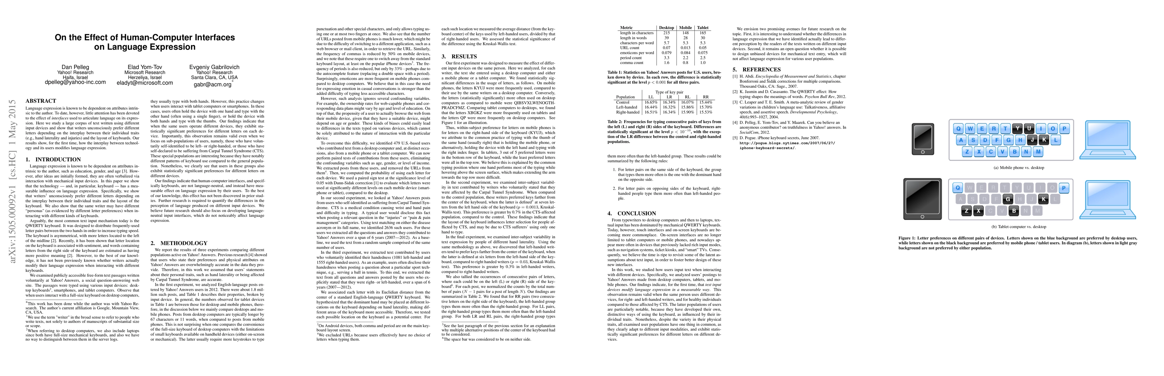 Language expression is known to be dependent on attributes intrinsic to the author. To date, however, little attention has been devoted to the effect of interfaces used to articulate language on its expression. Here we study a large corpus of text written using different input devices and show that writers unconsciously prefer different letters depending on the interplay between their individual traits (e.g., hand laterality and injuries) and the layout of keyboards. Our results show, for the first time, how the interplay between technology and its users modifies language expression.