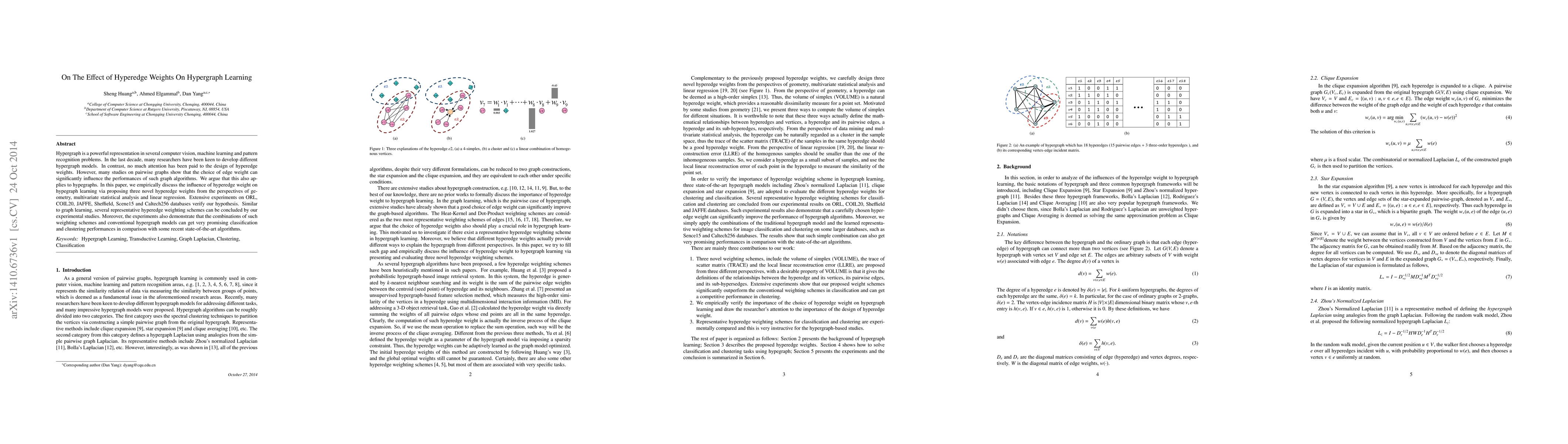 This paper explores the impact of hyperedge weights on hypergraph learning, proposing three novel weighting schemes based on geometry, multivariate statistics, and linear regression. Experimental results across multiple datasets show that these weights significantly enhance classification and clustering performance when combined with traditional hypergraph models.