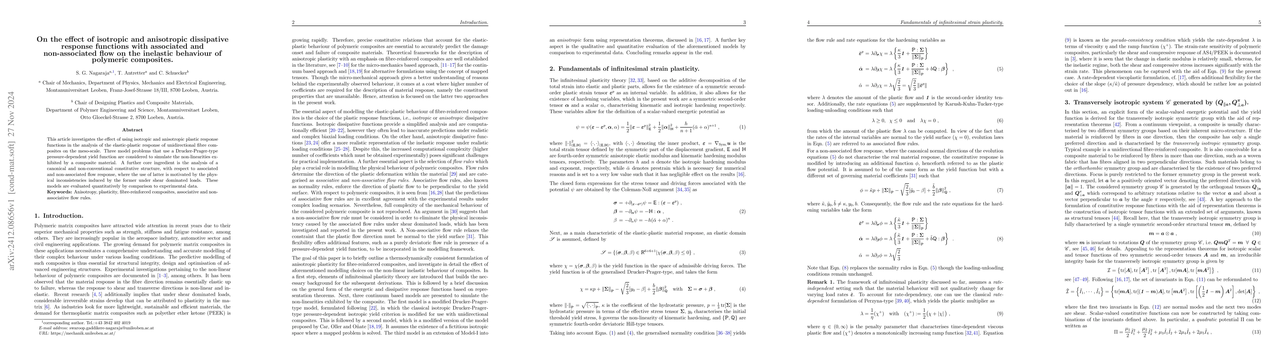 This paper examines how isotropic and anisotropic dissipative response functions, alongside associated and non-associated flow rules, influence the inelastic behavior of unidirectional fibre composites. The study evaluates three models with a Drucker-Prager yield function and compares their predictions to experimental data.