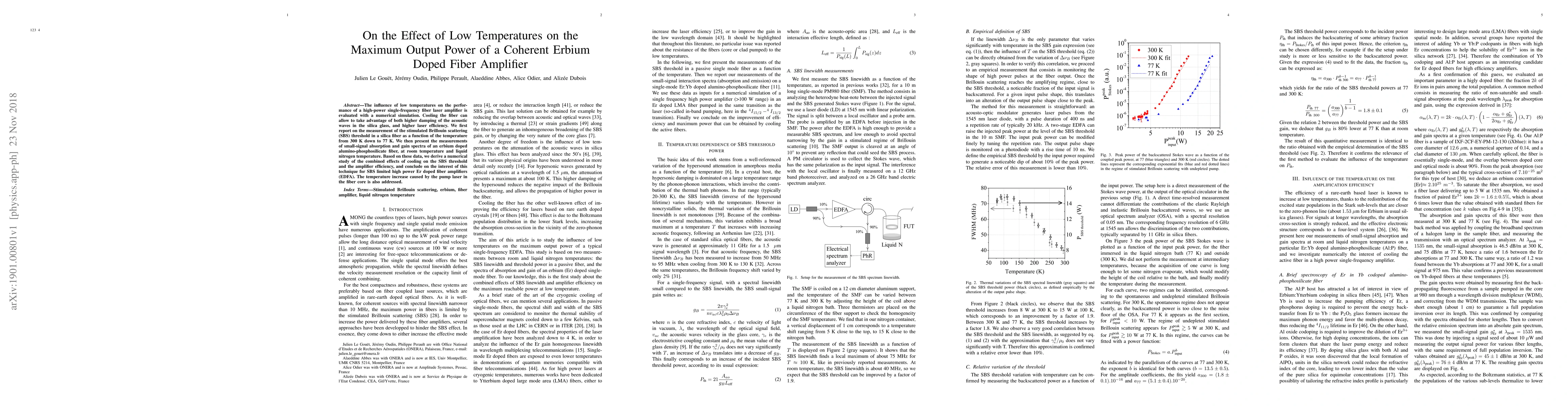 Low temperatures can improve the performance of high-power fiber laser amplifiers by reducing acoustic waves and increasing efficiency, making it a promising technique for SBS limited EDFA.