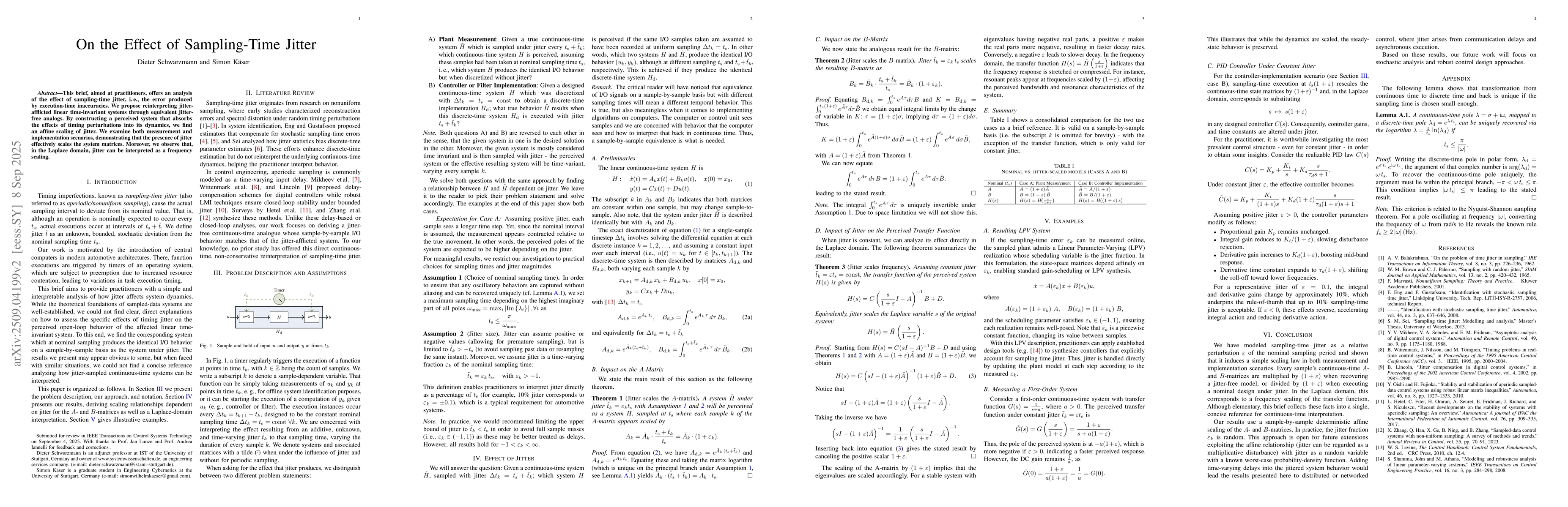 This brief, aimed at practitioners, offers an analysis of the effect of sampling-time jitter, i. e., the error produced by execution-time inaccuracies. We propose reinterpreting jitter-afflicted linear time-invariant systems through equivalent jitter-free analogs. By constructing a perceived system that absorbs the effects of timing perturbations into its dynamics, we find an affine scaling of jitter. We examine both measurement and implementation scenarios, demonstrating that the presence of jitter effectively scales the system matrices. Moreover, we observe that, in the Laplace domain, jitter can be interpreted as a frequency scaling.