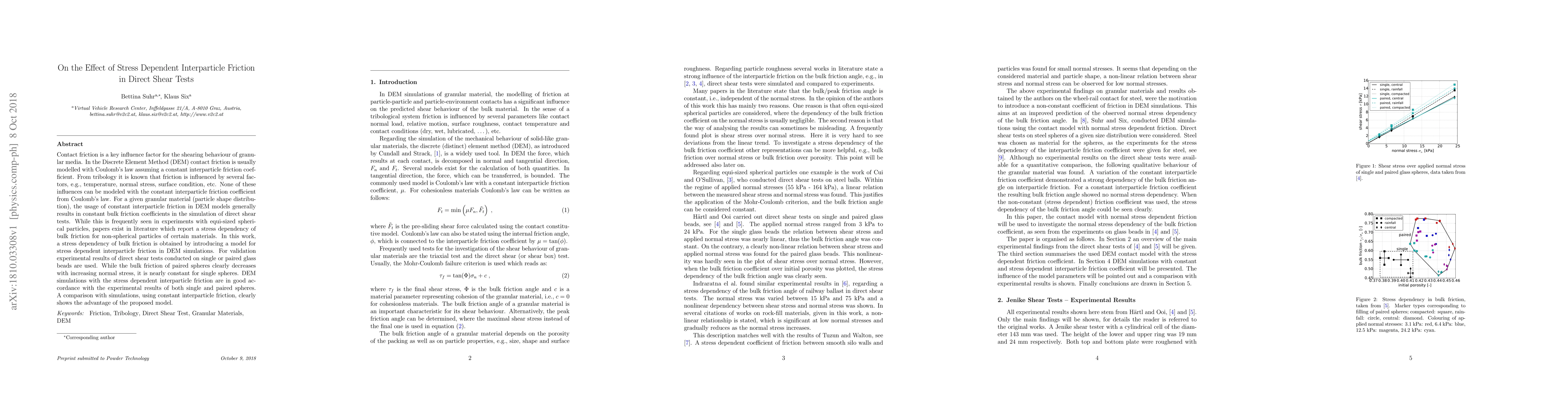 This paper investigates the effect of stress-dependent interparticle friction in granular materials using the discrete element method (DEM). It introduces a model to account for stress-dependent friction, showing improved agreement with experimental results of direct shear tests on glass beads compared to simulations using constant friction.
