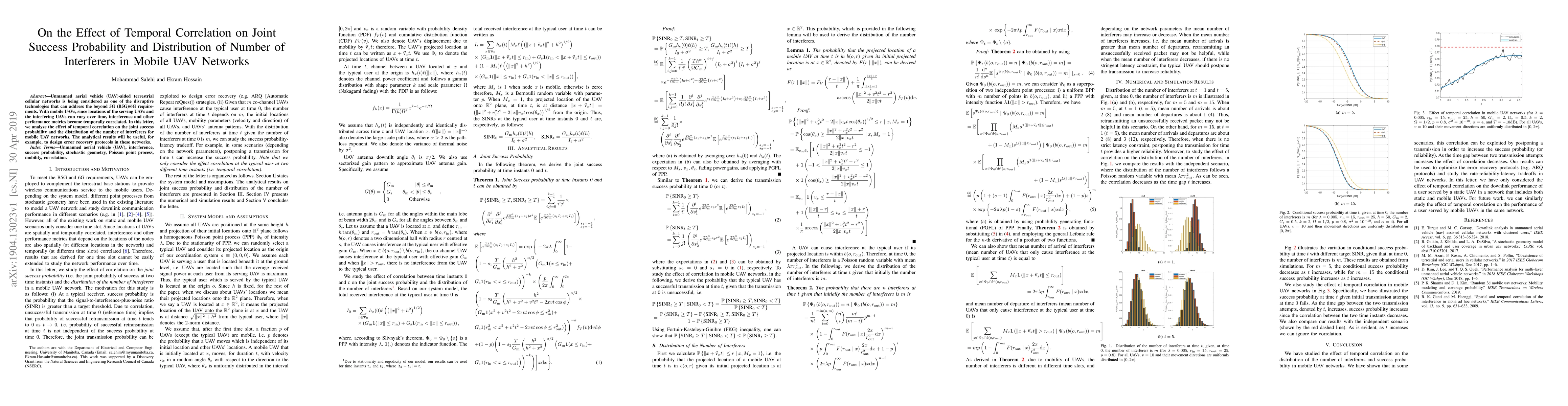 This paper investigates how temporal correlation affects the joint success probability and the distribution of interferers in mobile UAV networks. Analytical results provide insights for designing error recovery protocols in UAV-aided cellular networks.