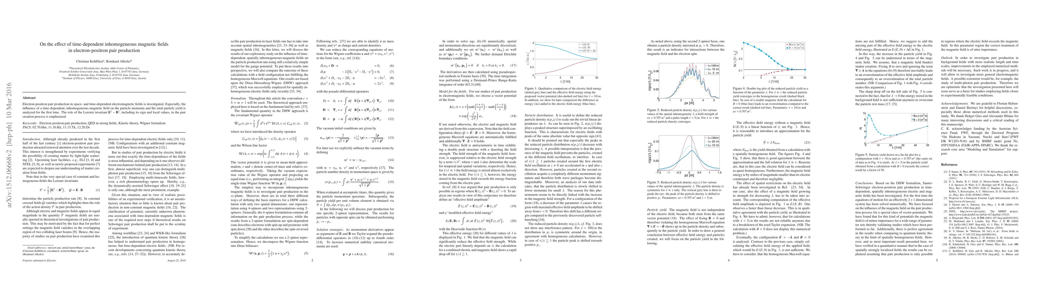 Electron-positron pair production in space- and time-dependent electromagnetic fields is investigated. Especially, the influence of a time-dependent, inhomogeneous magnetic field on the particle momenta and the total particle yield is analyzed for the first time. The role of the Lorentz invariant $\mathbf{E}^2 - \mathbf{B}^2$, including its sign and local values, in the pair creation process is emphasized.