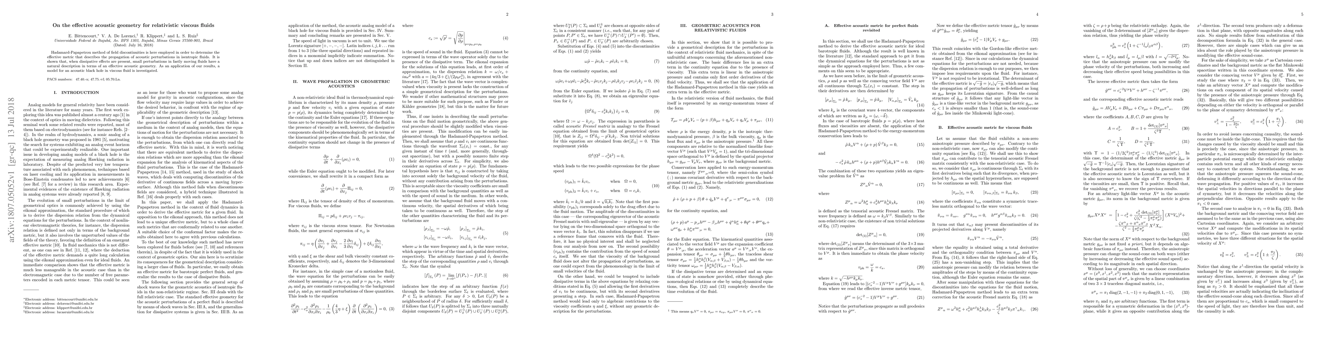 Hadamard-Papapetrou method of field discontinuities is here employed in order to determine the effective metric that describes the propagation of acoustic perturbations in isentropic fluids. It is shown that, when dissipative effects are present, small perturbations in fastly moving fluids have a natural description in terms of an effective acoustic geometry. As an application of our results, a model for an acoustic black hole in viscous fluid is investigated.