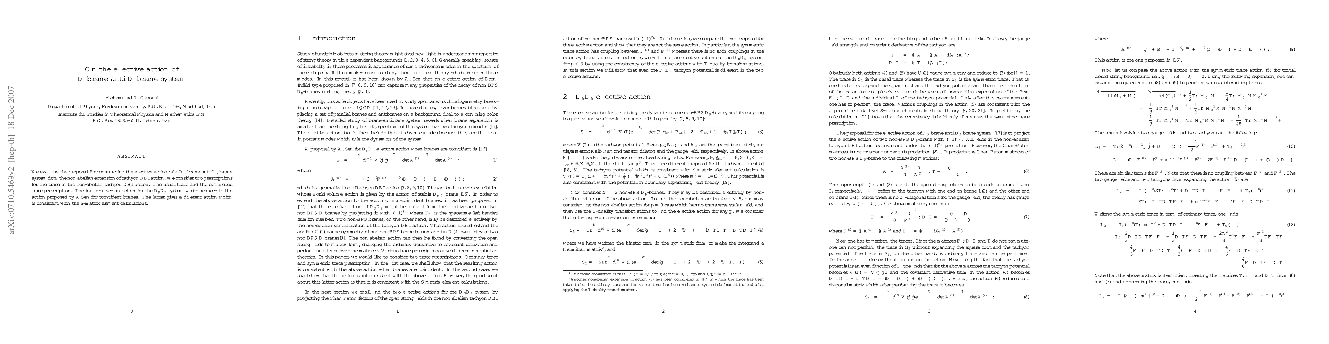 The paper investigates the effective action for a D-brane-anti-D-brane system using non-abelian extensions of the tachyon DBI action, comparing the usual trace prescription, which aligns with A. Sen's coincident brane action, to the symmetric trace prescription, which matches S-matrix calculations.
