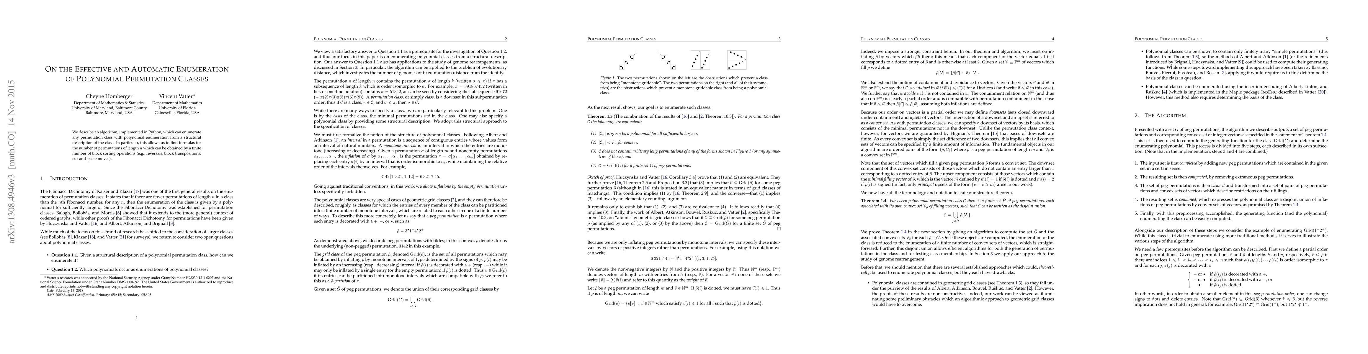 We describe an algorithm, implemented in Python, which can enumerate any permutation class with polynomial enumeration from a structural description of the class. In particular, this allows us to find formulas for the number of permutations of length n which can be obtained by a finite number of block sorting operations (e.g., reversals, block transpositions, cut-and-paste moves).