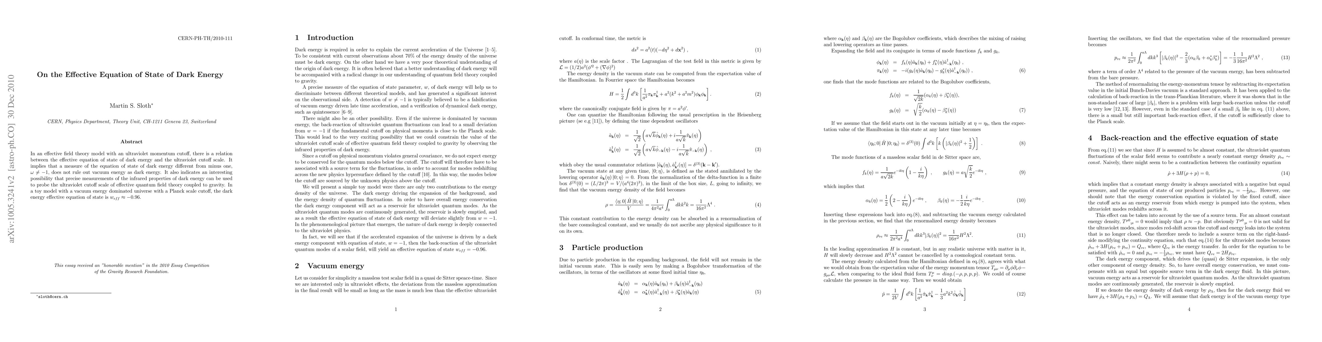 This paper explores an effective field theory model where the equation of state of dark energy correlates with the ultraviolet cutoff scale, suggesting that vacuum energy could still be a viable dark energy candidate. It proposes that precise infrared measurements of dark energy may reveal insights into the ultraviolet cutoff scale of quantum field theory in a gravity context, with a toy model yielding an equation of state of -0.96.