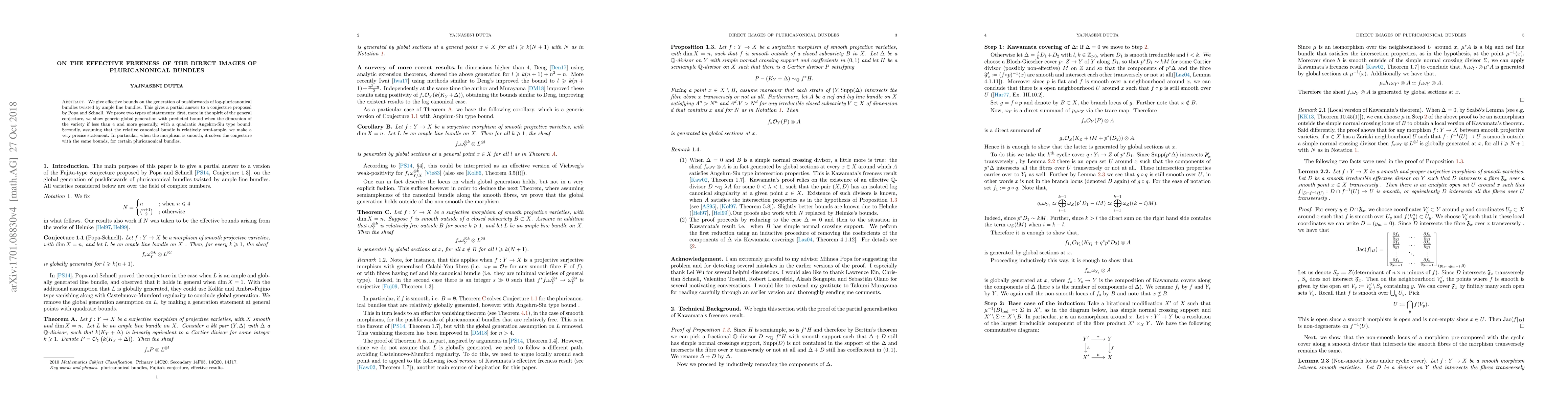 This paper provides effective bounds for the generation of pushforwards of log-pluricanonical bundles twisted by ample line bundles, partially addressing a conjecture by Popa and Schnell. It proves generic global generation under dimension constraints and precise statements under relative semi-ampleness of the relative canonical bundle.