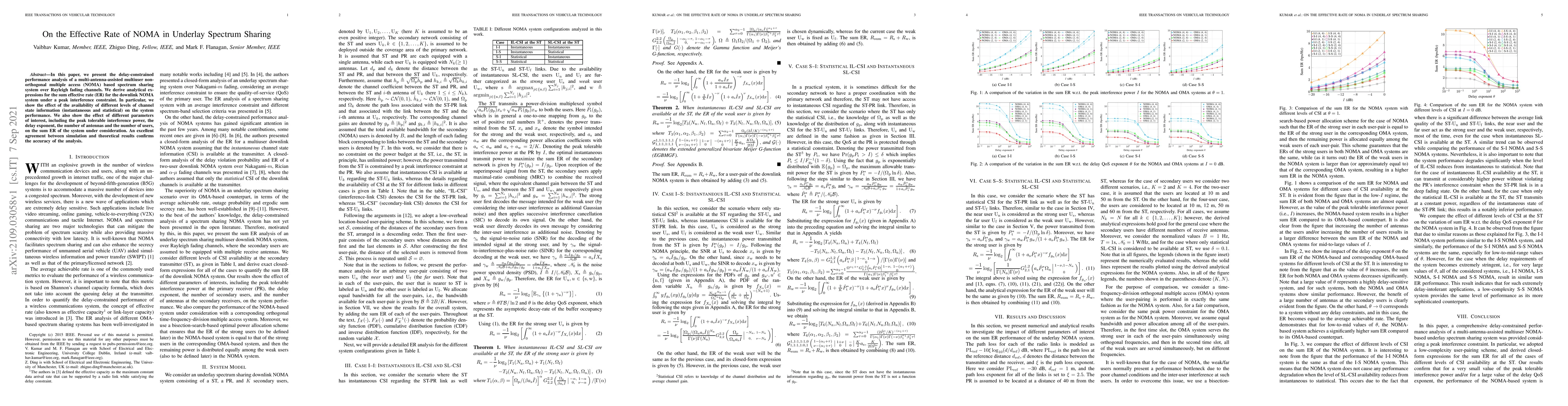 This paper analyzes the delay-constrained performance of a multi-antenna-assisted multiuser NOMA spectrum sharing system, deriving analytical expressions for the sum effective rate under peak interference constraints. It examines the impact of channel state information availability and various system parameters on performance, with results validated by simulations.