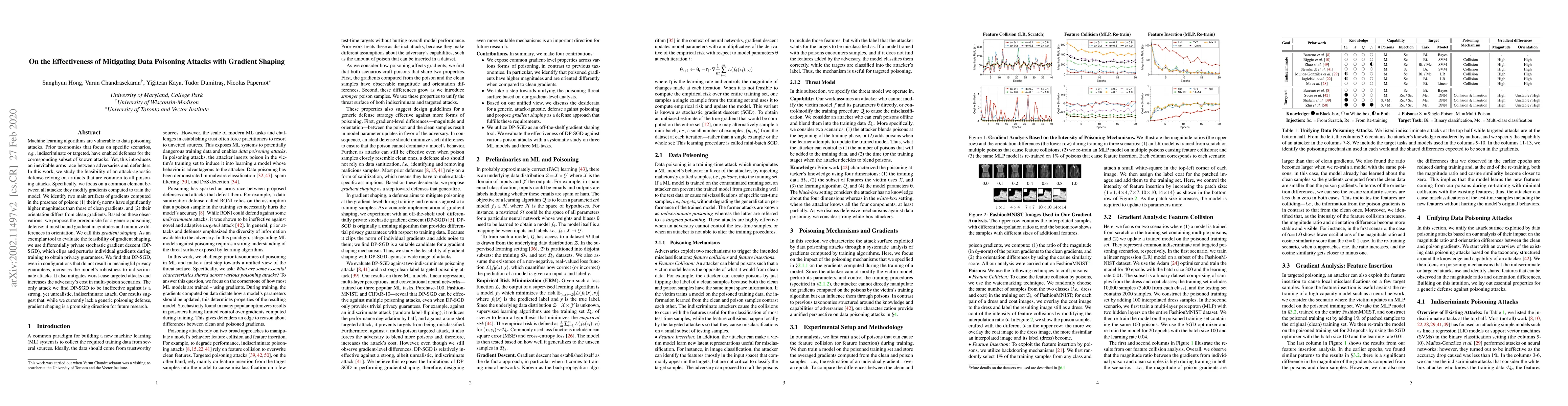 Researchers propose a new defense method called gradient shaping to counter data poisoning attacks in machine learning models. By bounding gradient magnitudes and orientations, gradient shaping increases model robustness against various types of attacks.