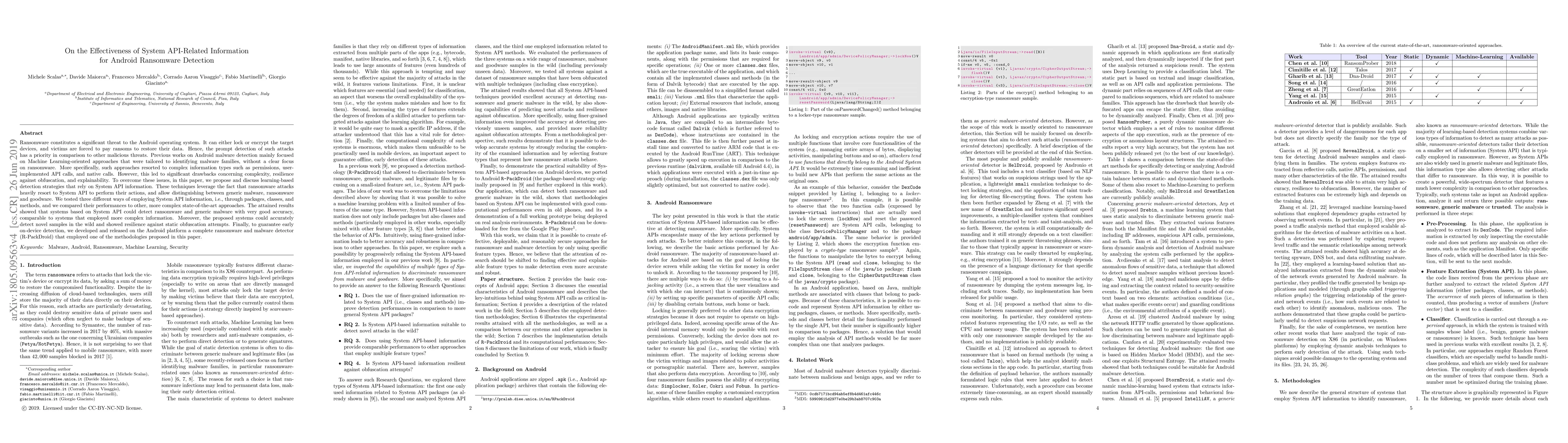 This paper proposes learning-based detection strategies for Android ransomware using System API information, which is simpler and more resilient than traditional methods. The results show that these strategies can detect ransomware and generic malware with high accuracy and resilience against obfuscation, leading to the development of an on-device detection tool called R-PackDroid.