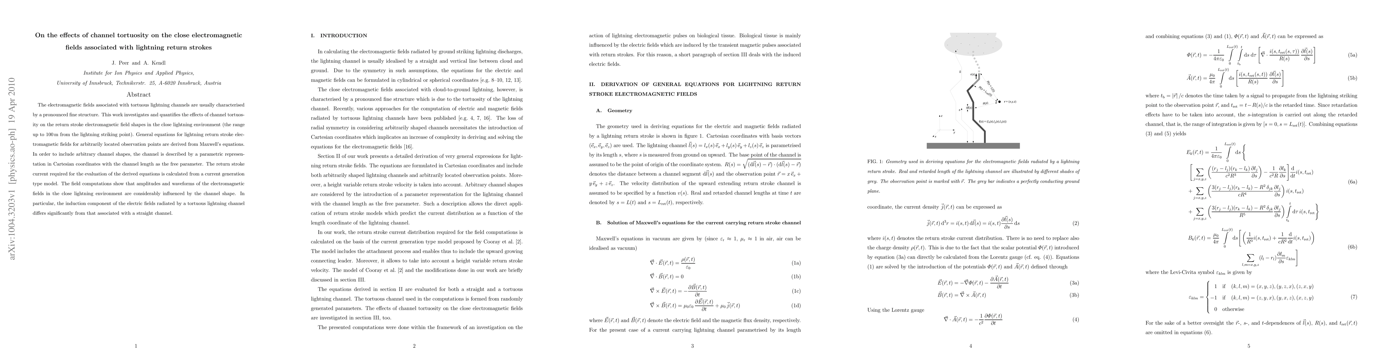 This paper derives general equations for electromagnetic fields from lightning return strokes considering channel tortuosity and finds that the shape of the channel significantly influences the field's amplitude and waveform, especially the induction component of electric fields, in the vicinity up to 100m from the strike point.