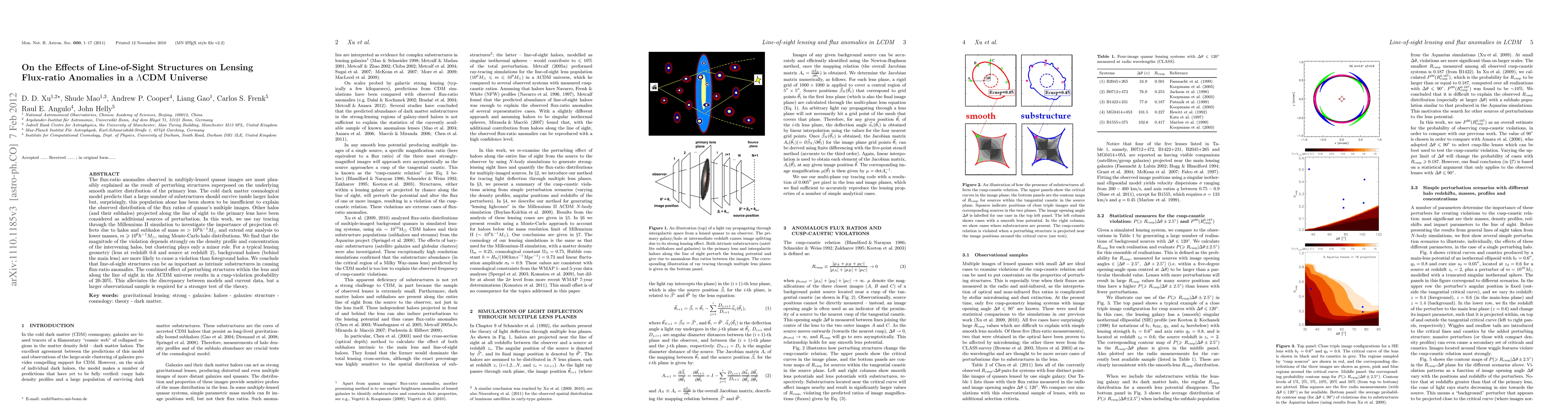 This study investigates the impact of line-of-sight structures on lensing flux-ratio anomalies in a LCDM universe, finding that these structures can be as significant as intrinsic substructures in causing such anomalies. The analysis suggests a 20-30% probability of cusp violation due to combined effects, alleviating current model-data discrepancies.