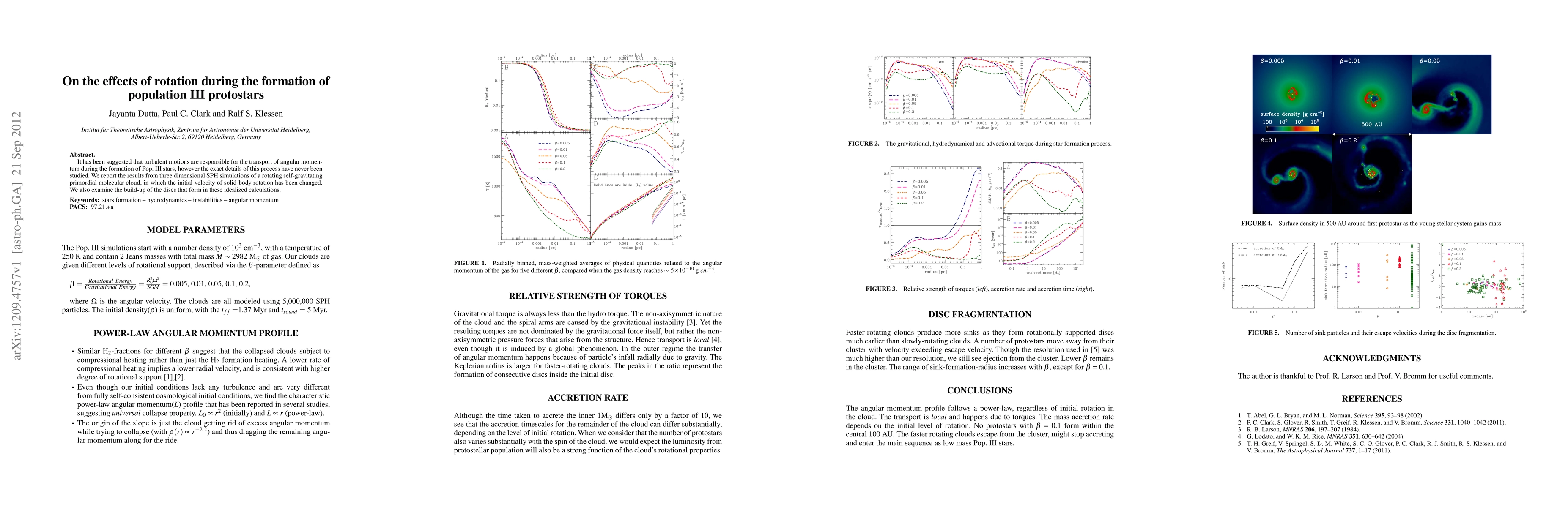 It has been suggested that turbulent motions are responsible for the transport of angular momentum during the formation of Population III stars, however the exact details of this process have never been studied. We report the results from three dimensional SPH simulations of a rotating self-gravitating primordial molecular cloud, in which the initial velocity of solid-body rotation has been changed. We also examine the build-up of the discs that form in these idealized calculations.