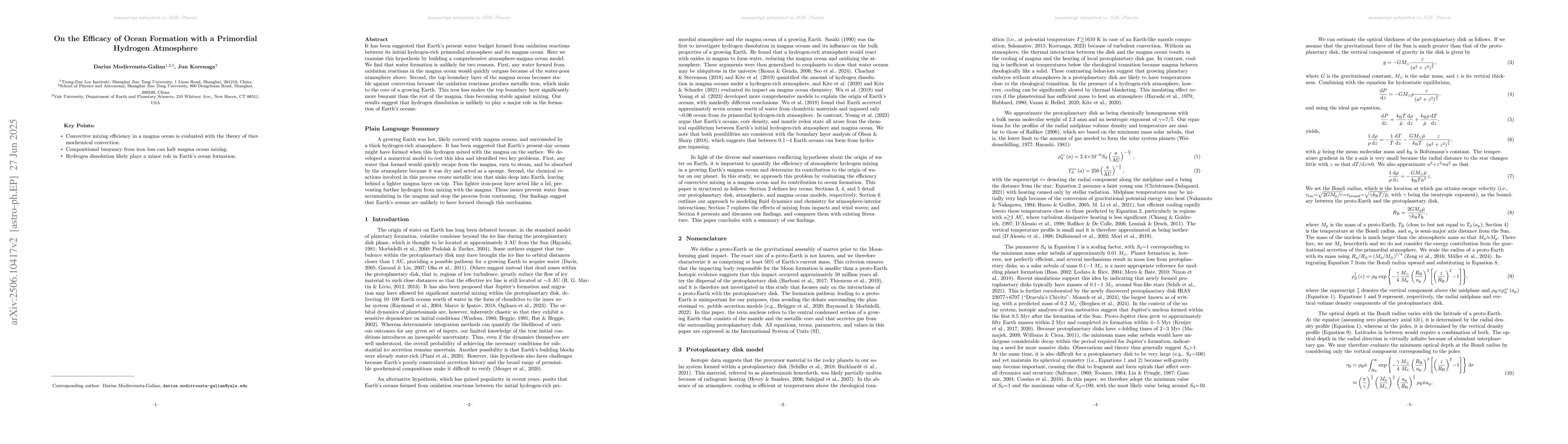 Researchers found that Earth's oceans are unlikely to have formed from a primordial hydrogen atmosphere due to rapid outgassing and buoyant boundary layers in the magma ocean.