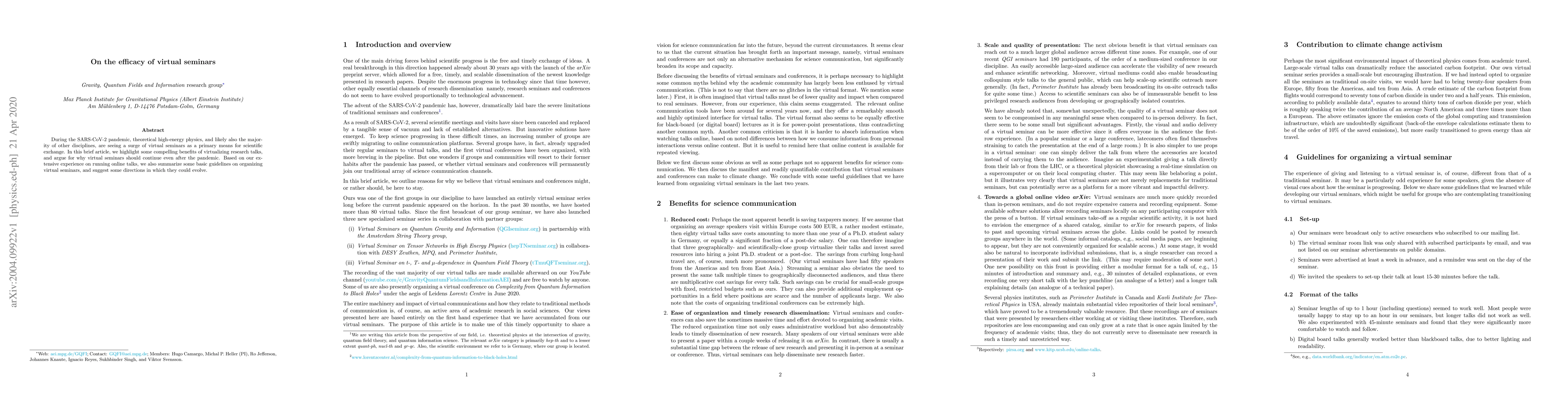 During the SARS-CoV-2 pandemic, theoretical high-energy physics, and likely also the majority of other disciplines, are seeing a surge of virtual seminars as a primary means for scientific exchange. In this brief article, we highlight some compelling benefits of virtualizing research talks, and argue for why virtual seminars should continue even after the pandemic. Based on our extensive experience on running online talks, we also summarize some basic guidelines on organizing virtual seminars, and suggest some directions in which they could evolve.
