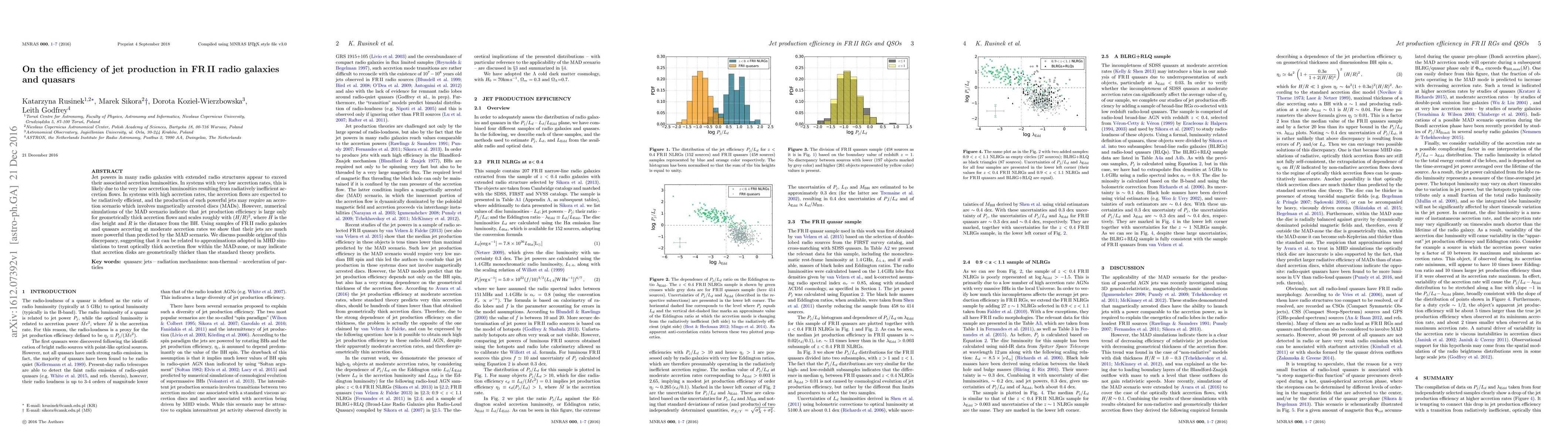 This paper investigates the efficiency of jet production in FR II radio galaxies and quasars, finding that their jets are more powerful than predicted by magnetically arrested disc (MAD) scenarios. The study suggests that discrepancies may arise from approximations in simulations or that accretion disks may be geometrically thicker than expected.