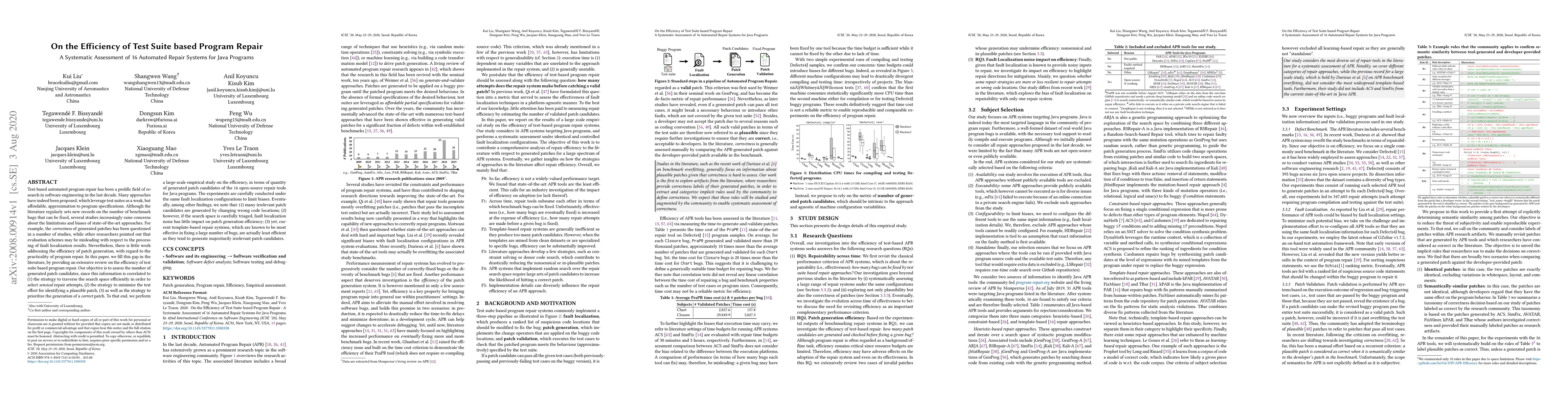 This paper conducts a systematic assessment of 16 automated repair systems for Java programs, focusing on the efficiency of patch generation based on test suites. The study aims to evaluate the number of generated patch candidates to understand their practicality, examining strategies for efficient search space traversal, minimal test effort, and prioritization of correct patches.
