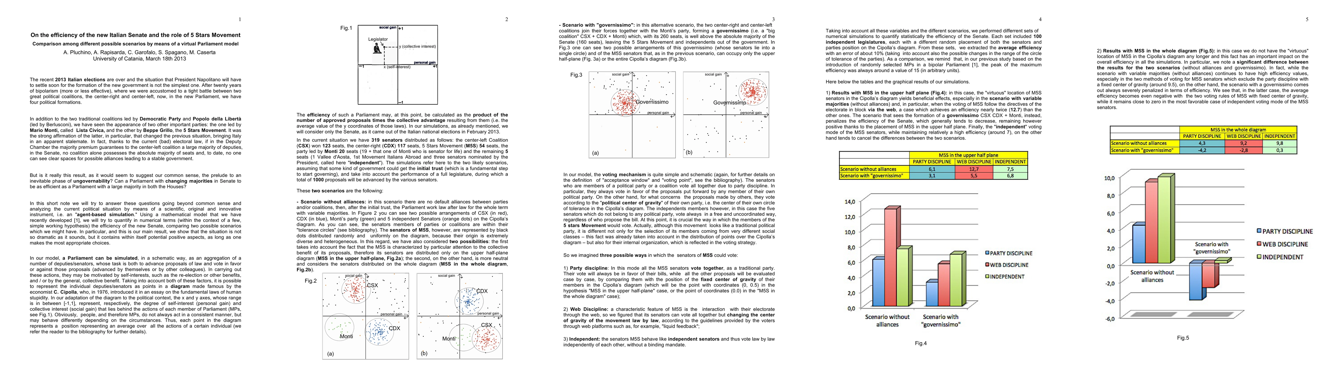 This paper examines the efficiency of the new Italian Senate post-2013 elections using an agent-based simulation model. It finds that despite the presence of four political formations, the situation may not lead to ungovernability if appropriate choices are made, highlighting potential positive aspects of the new political landscape.