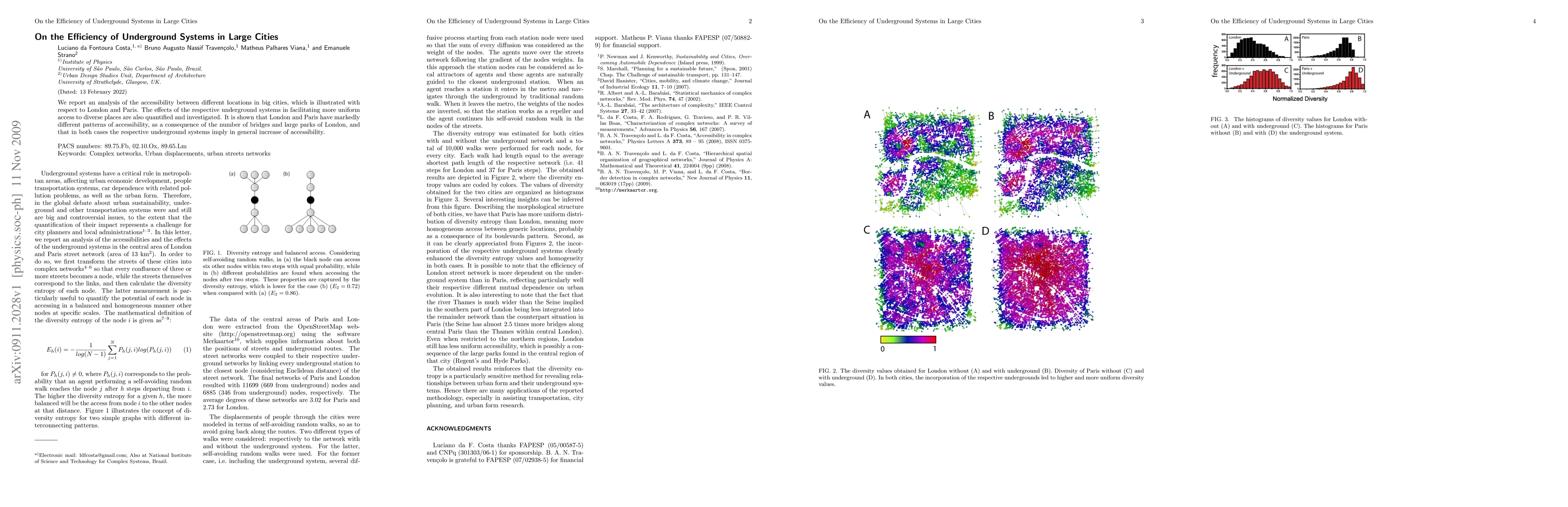 We report an analysis of the accessibility between different locations in big cities, which is illustrated with respect to London and Paris. The effects of the respective underground systems in facilitating more uniform access to diverse places are also quantified and investigated. It is shown that London and Paris have markedly different patterns of accessibility, as a consequence of the number of bridges and large parks of London, and that in both cases the respective underground systems imply in general increase of accessibility.