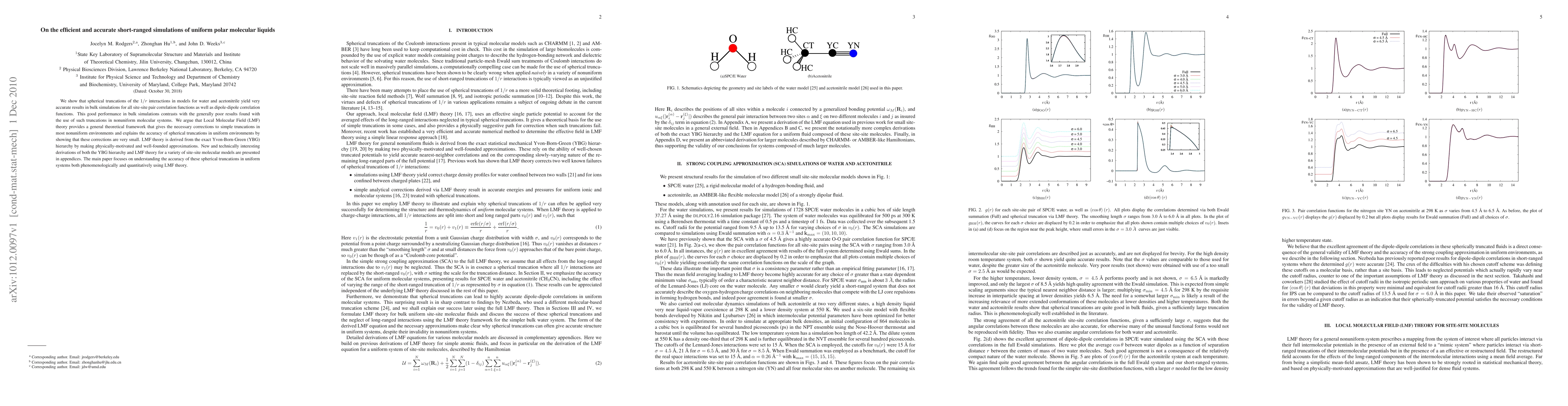 We show that spherical truncations of the 1/r interactions in models for water and acetonitrile yield very accurate results in bulk simulations for all site-site pair correlation functions as well as dipole-dipole correlation functions. This good performance in bulk simulations contrasts with the generally poor results found with the use of such truncations in nonuniform molecular systems. We argue that Local Molecular Field (LMF) theory provides a general theoretical framework that gives the necessary corrections to simple truncations in most nonuniform environments and explains the accuracy of spherical truncations in uniform environments by showing that these corrections are very small. LMF theory is derived from the exact Yvon-Born-Green (YBG) hierarchy by making physically-motivated and well-founded approximations. New and technically interesting derivations of both the YBG hierarchy and LMF theory for a variety of site-site molecular models are presented in appendices. The main paper focuses on understanding the accuracy of these spherical truncations in uniform systems both phenomenologically and quantitatively using LMF theory.