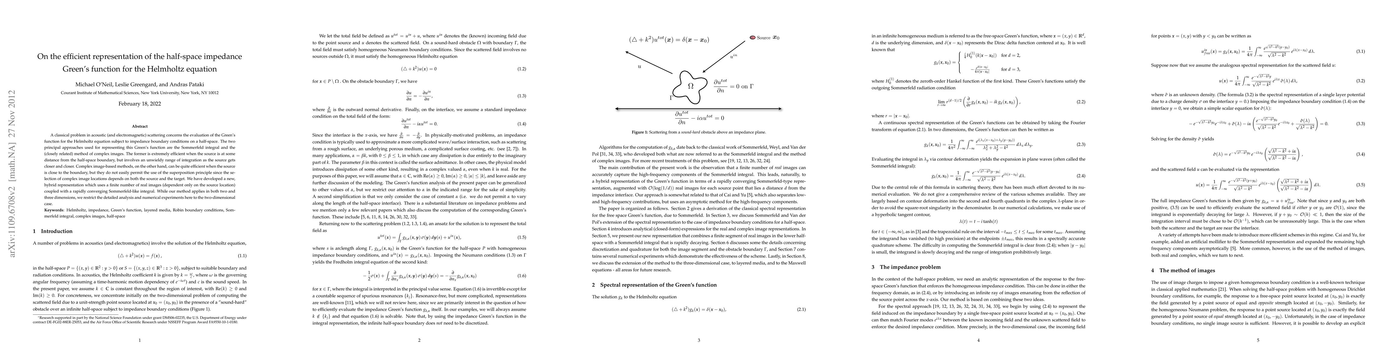 A classical problem in acoustic (and electromagnetic) scattering concerns the evaluation of the Green's function for the Helmholtz equation subject to impedance boundary conditions on a half-space. The two principal approaches used for representing this Green's function are the Sommerfeld integral and the (closely related) method of complex images. The former is extremely efficient when the source is at some distance from the half-space boundary, but involves an unwieldy range of integration as the source gets closer and closer. Complex image-based methods, on the other hand, can be quite efficient when the source is close to the boundary, but they do not easily permit the use of the superposition principle since the selection of complex image locations depends on both the source and the target. We have developed a new, hybrid representation which uses a finite number of real images (dependent only on the source location) coupled with a rapidly converging Sommerfeld-like integral. While our method applies in both two and three dimensions, we restrict the detailed analysis and numerical experiments here to the two-dimensional case.
