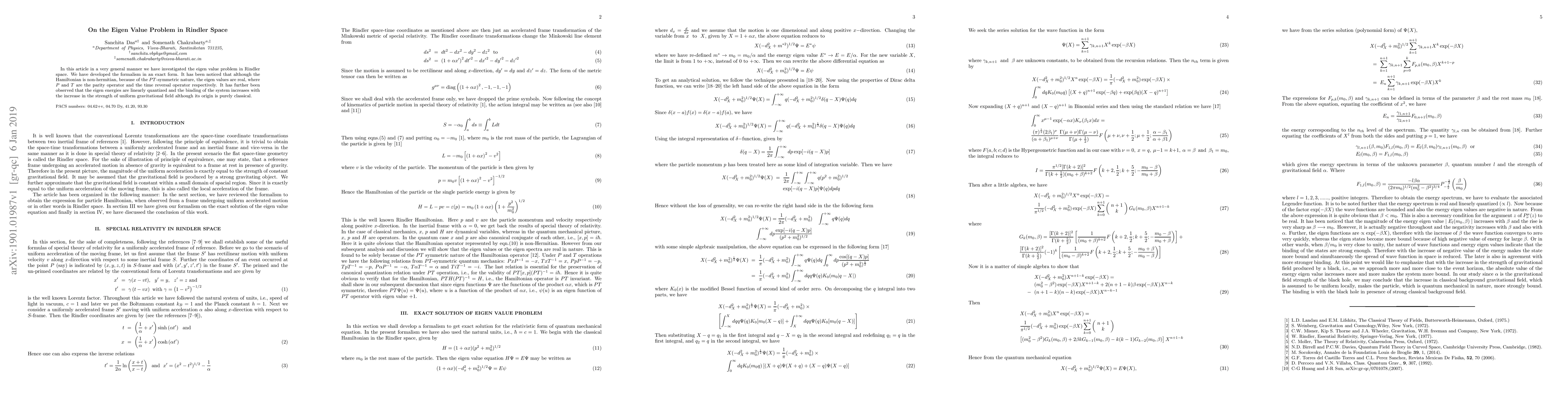 Research investigates eigen values in Rindler space, finding real energies with linear quantization, even though the Hamiltonian is non-hermitian, due to PT symmetry.