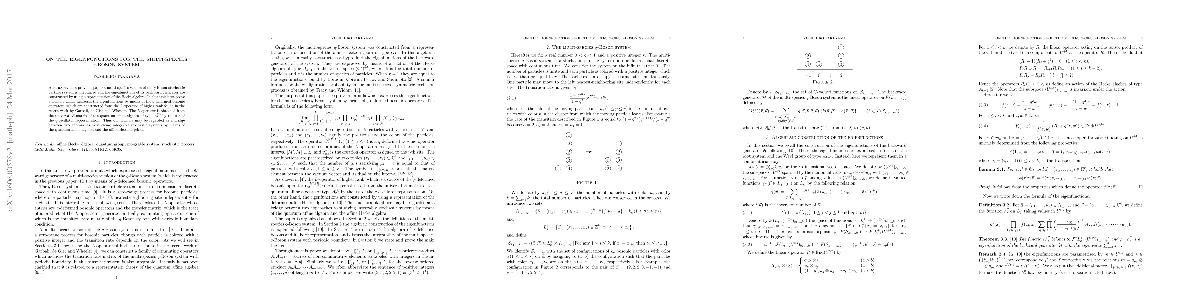 This paper extends a previous work on a multi-species q-Boson system by deriving eigenfunctions for its backward generator using q-deformed bosonic operators linked to the L-operator from the quantum affine algebra, thus establishing a connection between quantum affine algebra and affine Hecke algebra methods in integrable stochastic systems.