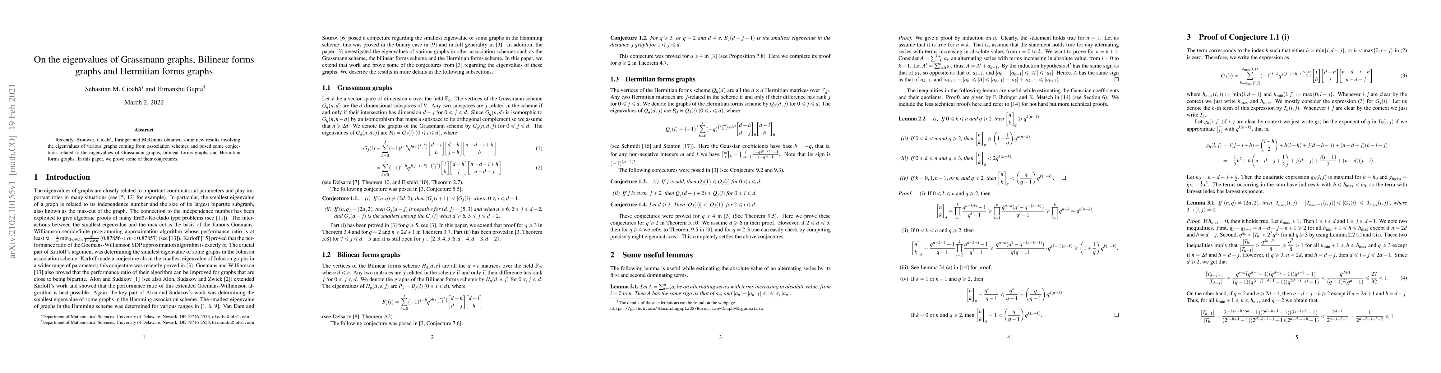 Researchers prove conjectures about eigenvalues of specific graph types, including Grassmann graphs, bilinear forms graphs, and Hermitian forms graphs, advancing understanding in association schemes.