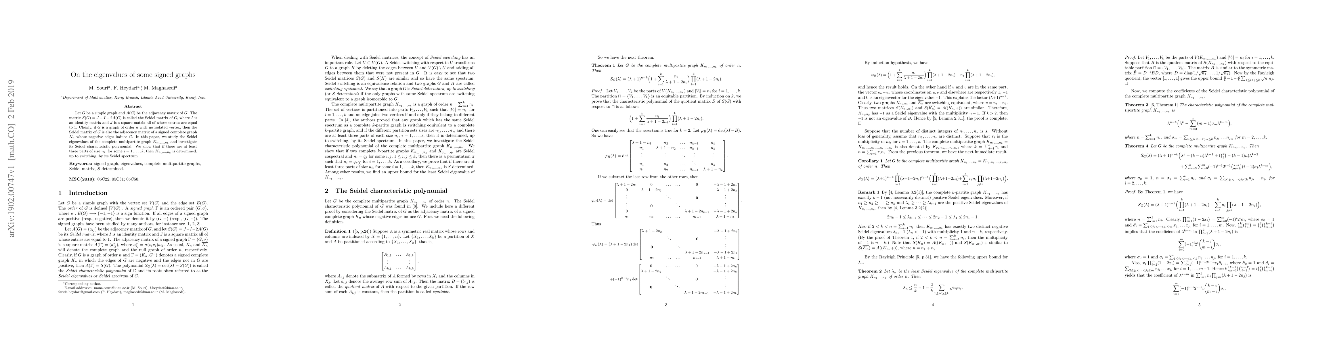 This research paper investigates the Seidel eigenvalues of complete multipartite graphs and finds that they determine the graph up to switching if at least three parts have the same size.