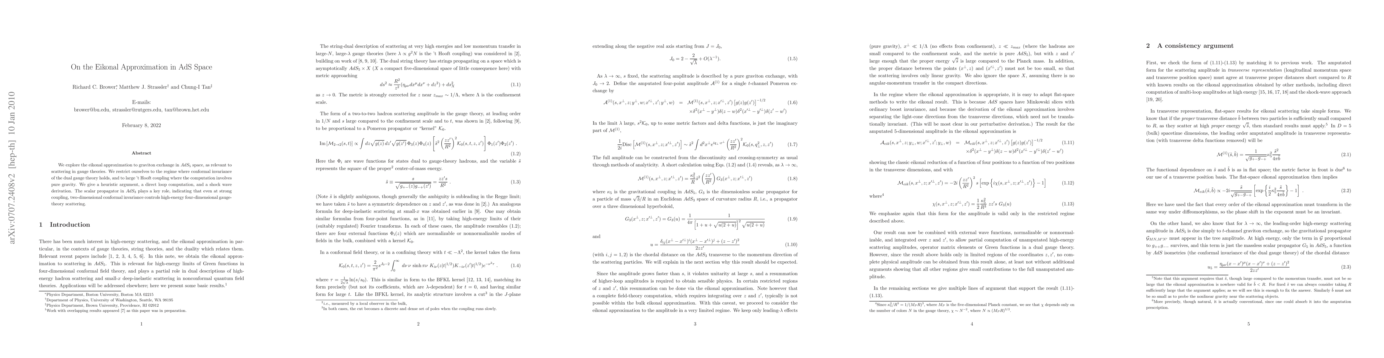 We explore the eikonal approximation to graviton exchange in AdS_5 space, as relevant to scattering in gauge theories. We restrict ourselves to the regime where conformal invariance of the dual gauge theory holds, and to large 't Hooft coupling where the computation involves pure gravity. We give a heuristic argument, a direct loop computation, and a shock wave derivation. The scalar propagator in AdS_3 plays a key role, indicating that even at strong coupling, two-dimensional conformal invariance controls high-energy four-dimensional gauge-theory scattering.