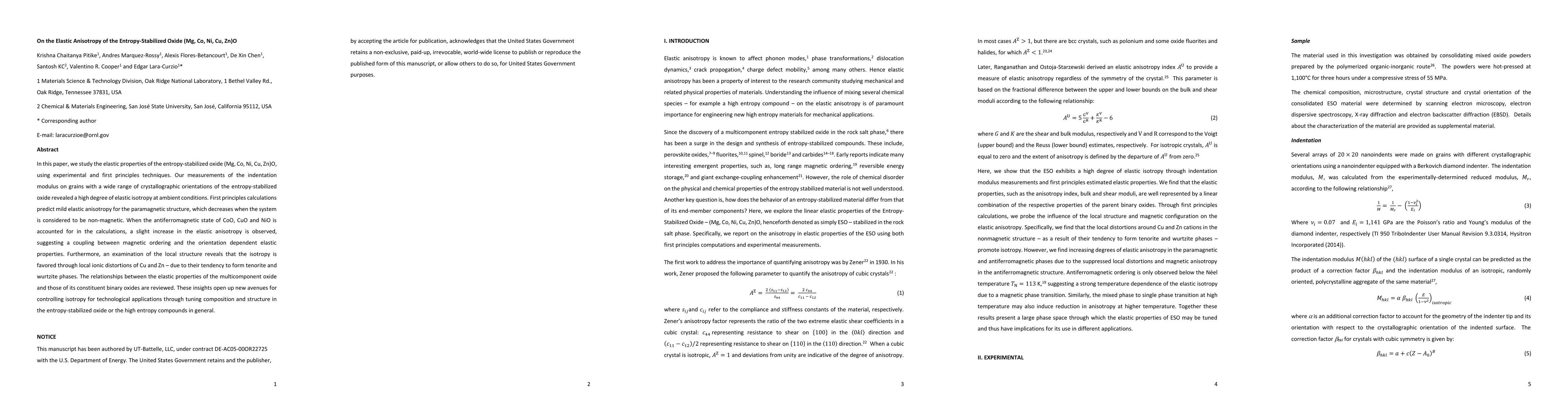 Researchers studied the elastic properties of a multicomponent oxide, finding high elastic isotropy at ambient conditions, with calculations suggesting magnetic ordering affects anisotropy.
