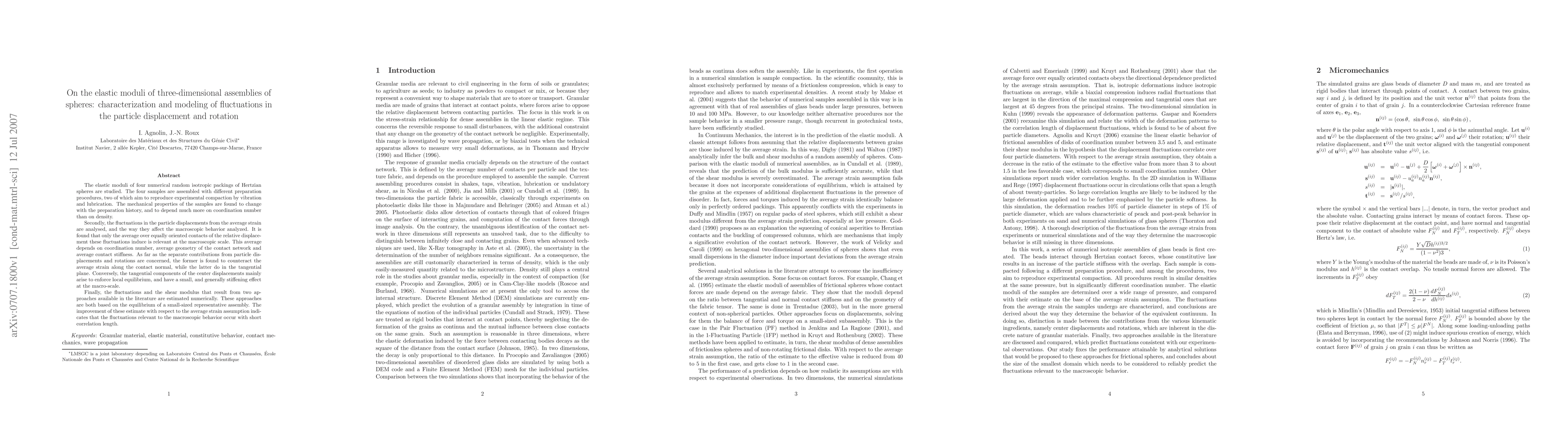 This paper investigates the elastic moduli of four numerical packings of Hertzian spheres, prepared using different methods to simulate experimental conditions. The study finds that preparation history and coordination number significantly affect mechanical properties, more so than density. Further analysis reveals that fluctuations in particle displacements and rotations impact macroscopic behavior, with the average relative displacement over equally oriented contacts being crucial. Displacements counteract average strain along contact normals, while rotations affect the tangential plane, and tangential displacements enforce local equilibrium with a generally stiffening macro-scale effect.