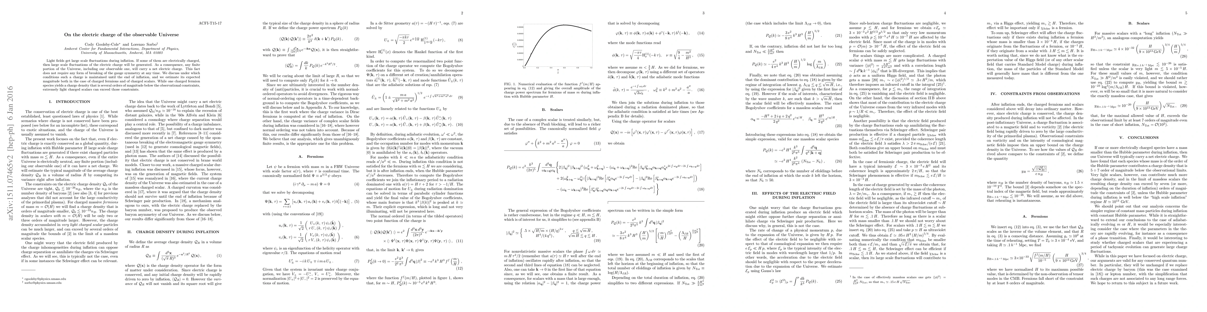 The universe is expected to carry a net electric charge due to large-scale fluctuations during inflation, regardless of whether the fluctuations are charged or not. This charge can range from being below observational constraints for light fermions to exceeding them for extremely light scalars.