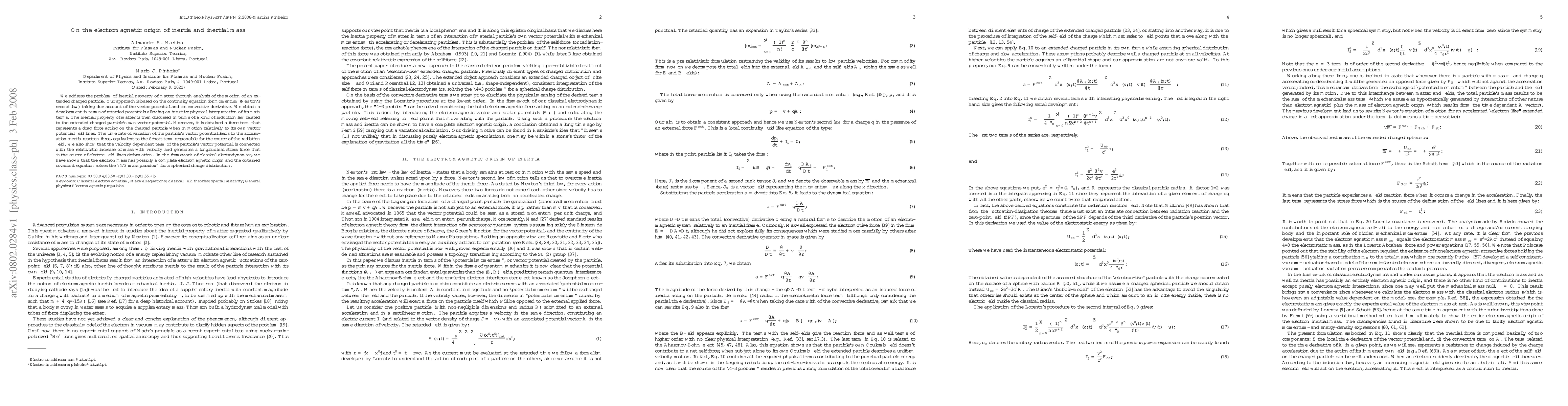 This paper explores how electromagnetic forces may contribute to an object's inertia, potentially resolving the '4/3 mass paradox' in classical electrodynamics. It proposes a new understanding of inertial mass as connected to an induced vector potential, leading to interesting implications for our understanding of mass and radiation.