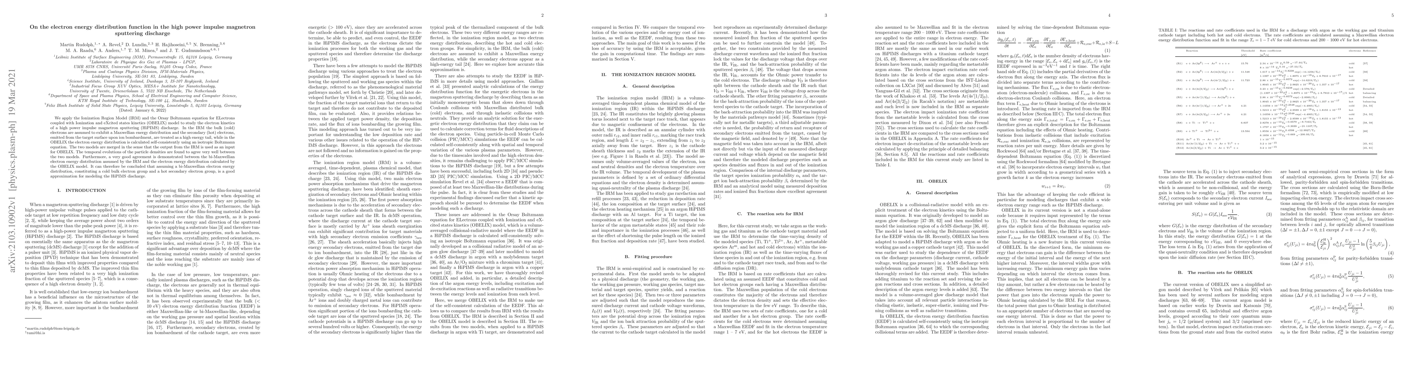 This paper combines the Ionization Region Model (IRM) with the OBELIX model to study electron kinetics in high power impulse magnetron sputtering discharges. The results show good agreement between the assumed bi-Maxwellian distribution and the calculated electron energy distribution, validating the bi-Maxwellian approximation for HiPIMS modeling.