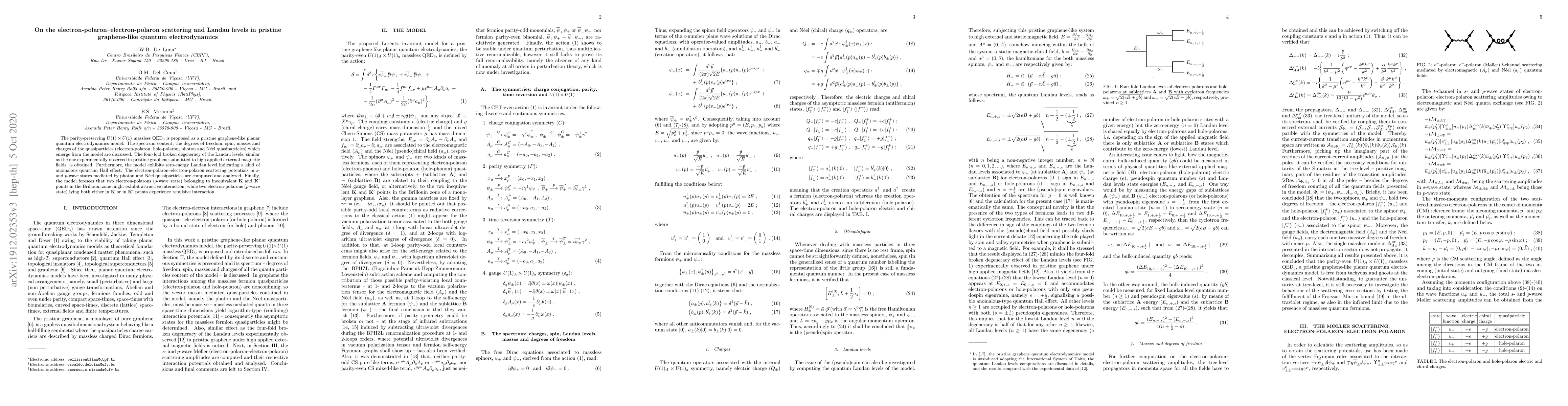 This paper proposes a $U(1)\times U(1)$ massless QED$_3$ model for pristine graphene-like quantum electrodynamics, analyzing quasiparticles and their interactions. It reveals a four-fold broken degeneracy and zero-energy Landau level, predicting attractive interactions between $s$-wave electron-polarons and repulsive interactions between $p$-wave electron-polarons.
