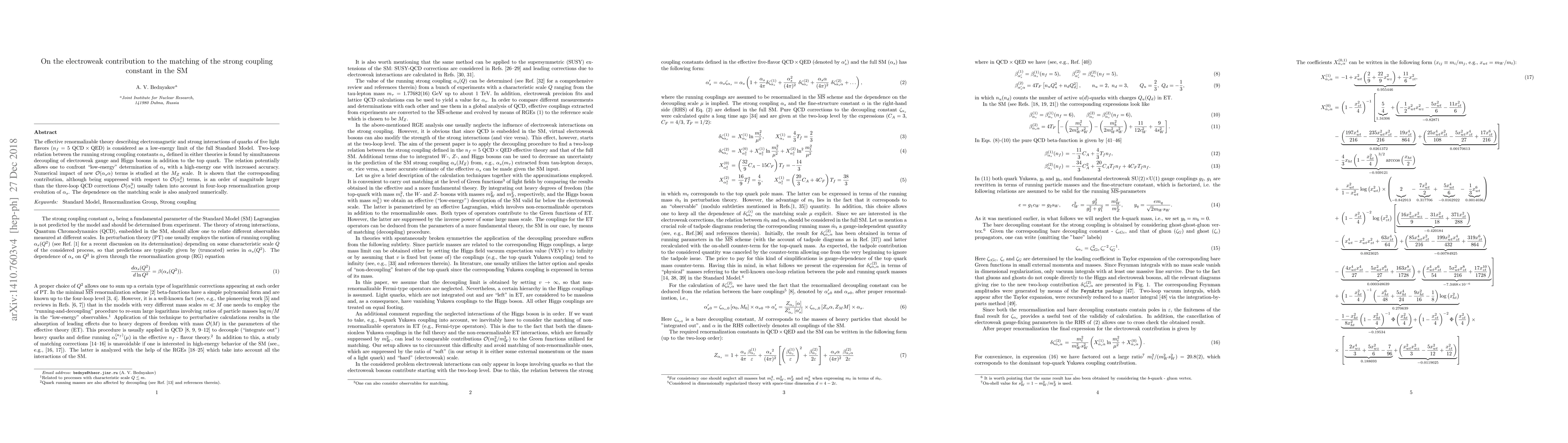 The effective renormalizable theory describing electromagnetic and strong interactions of quarks of five light flavors ($n_f = 5$ QCD$\times$QED) is considered as a low-energy limit of the full Standard Model. Two-loop relation between the running strong coupling constants $\alpha_s$ defined in either theories is found by simultaneous decoupling of electroweak gauge and Higgs bosons in addition to the top quark. The relation potentially allows one to confront "low-energy determination of $\alpha_s$ with a high-energy one with increased accuracy. Numerical impact of new $\mathcal{O}(\alpha_s\alpha)$ terms is studied at the $M_Z$ scale. It is shown that the corresponding contribution, although being suppressed with respect to $\mathcal{O}(\alpha_s^2)$ terms, is an order of magnitude larger than the three-loop QCD corrections $\mathcal{O}(\alpha_s^3)$ usually taken into account in four-loop renormalization group evolution of $\alpha_s$. The dependence on the matching scale is also analyzed numerically.