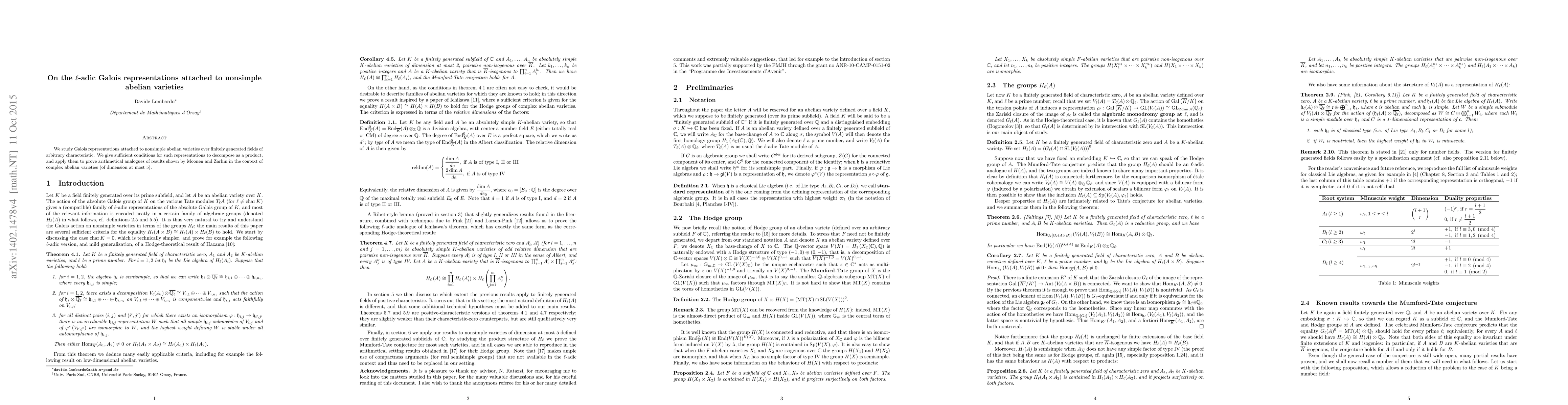This paper investigates Galois representations linked to nonsimple abelian varieties over finitely generated fields, providing conditions for their decomposition into products. It also extends results from complex abelian varieties to arithmetic settings.